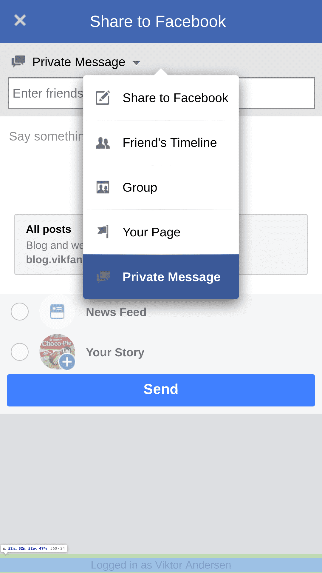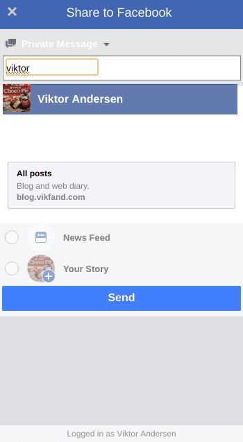 Did you know it’s possible to have a conversation with yourself on Facebook Messenger? I discovered it by accident when creating a share button for my grocery price comparison site https://allematpriser.no. It’s convenient to have a convo with yourself as it makes it possible to easily share text and files between your devices.