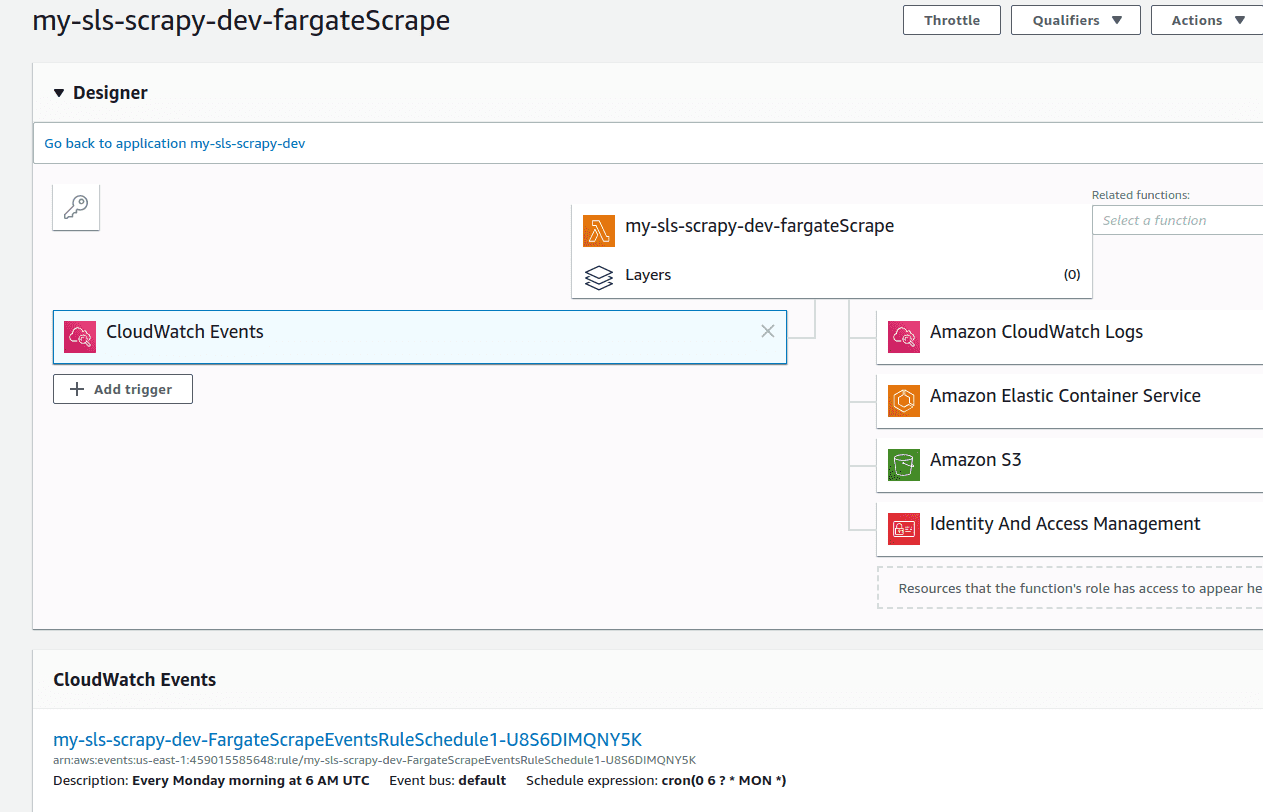 One of the advantages of using the AWS ecosystem is that it contains solutions for all common and uncommon tasks such as scheduling, event notifications, message queues, etc. The Serverless framework even makes some of this easy for beginners, so let’s use it to schedule a weekly crawl with our spider.