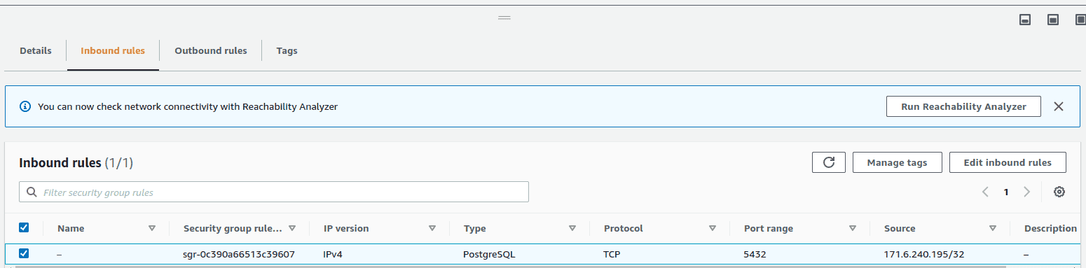 Under “Security” in the instance overview, select the VPC security group. Go to “Inbound rules” and click “Edit inbound rules”. Select “Anywhere-IPv4” under “Source” and save.