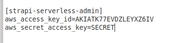 profile: strapi-serverless-admin # NOTE: Update to your profile name as in ~/.aws/credentials
