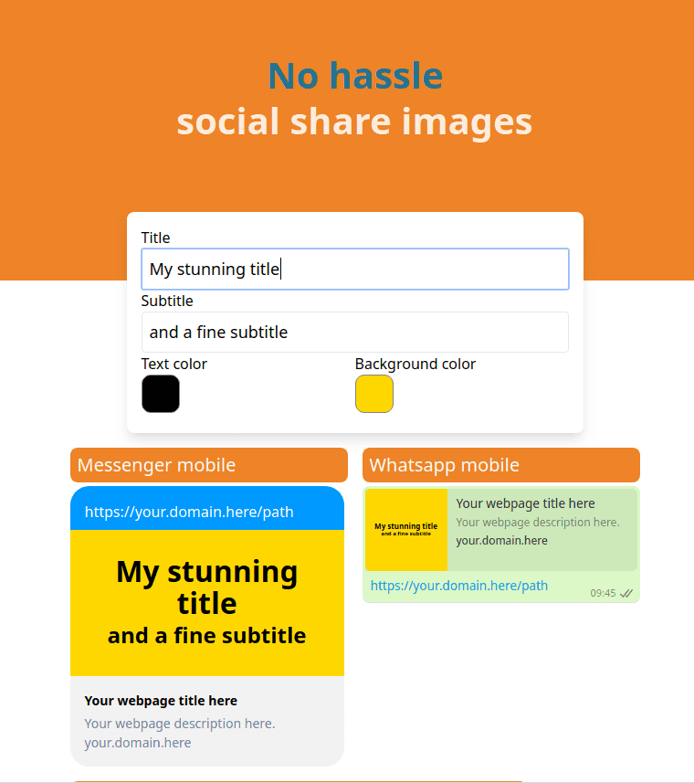 I had an idea for a very simple SaaS. Quick generation of social media preview images. Website owners can choose a featured image to be shown whenever a page is shared on social media. Having a good image is important, as it makes people quickly see what the link is about, and make them more likely to click it. But it is quite a pain in the ass (PITA) to manage these images, as they need to have correct dimensions, and you might want to have a different image for each of your thousands of articles.